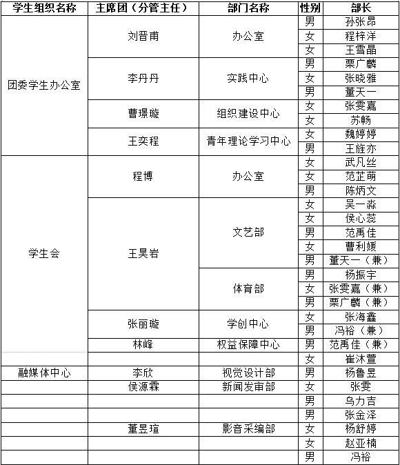 根据学院团委工作部署,我院首届学生组织(团委学生办公室、学生会、融媒体中心)主席团及部长级学生干部选拔工作已圆满完成。现将有关事项通知如下: